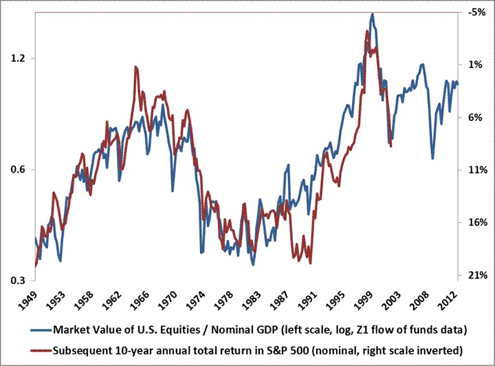 The market is expensive. In the 10 years after situations similar than this you make 0.
