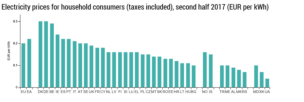 My country Portugal despite being one of the poorest have one of the highest prices of Power in Europe, 0,22 per kwh above the European average 0,2!
